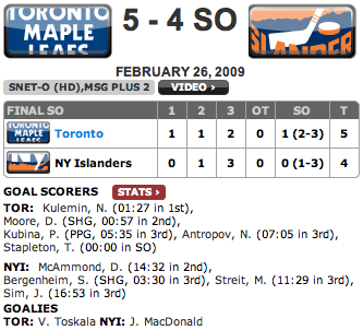 26/02/2009 – Maple Leafs vs Islanders