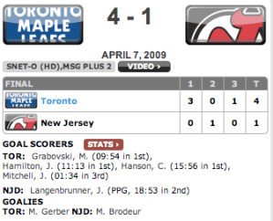 07/04/2009 – Maple Leafs vs Devils