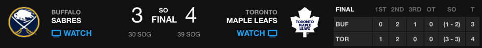 - Maple Leafs Edge Sabres 4-3 in Shootout (abcnews.go.com)