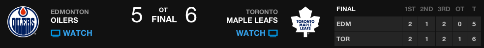 - Maple Leafs beat Oilers 6-5 in OT (pawprintcooper.com)