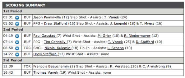 Placar final: Leafs 2 – Sabres 6.