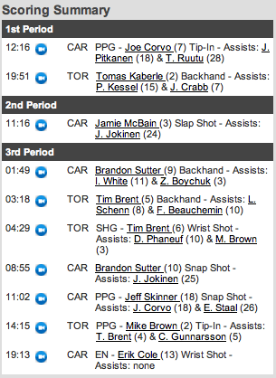 Com a derrota dos Hurricanes e a vitória de Rangers e Sabres, uma vitória dos Leafs deixariam os times todos com diferença de um ponto entre eles(69 Leafs, 70 Sabres, 71 Hurricanes, 72 Rangers), mas como não podemos vencer sempre …