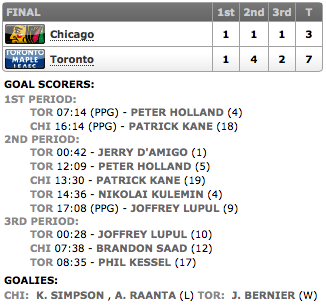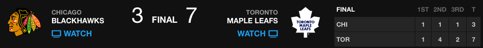- Maple Leafs cruise past Blackhawks 7-3 (nbcsports.com)