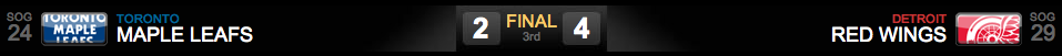 Placar final: Leafs 2 x 5 Red Wings.
