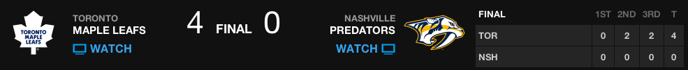 Resultado Final: Predators 4 x Leafs 5.