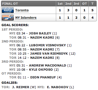 07/01/2014 – New York Islanders @ Toronto Maple Leafs