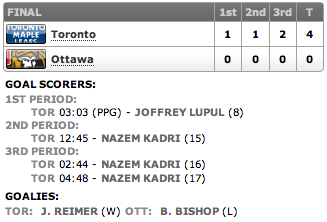 - Nazem Kadri scores hat trick for Maple Leafs in 4-0 victory over Senators (canada.com)
