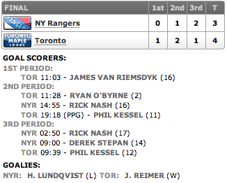 - Kessel, Leafs edge Rangers (oddonion.com)
