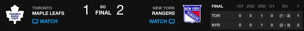 - Recap: Rangers 3, Maple Leafs 2 (SO) (wdsu.com)