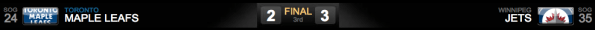 Para terminar o ano, após a derrota na prorrogação para os Hurricanes, com um gol em powerplay do capitão Eric Staal, os Leafs foram à Winnipeg enfrentar os Jets.