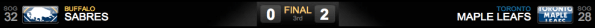 Nos dois períodos seguintes os Leafs controlaram a partida e Gustavsson não permitiu aos Sabres qualquer chance de diminuir a diferença no placar. Jonas Gustavsson teve o seu segundo shutout em 4 jogos, mantendo os Leafs na coluna de vitórias.
