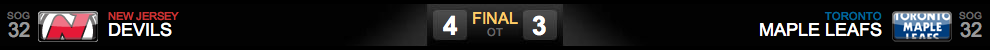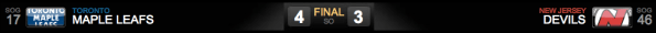 Vitória suada, mas por shootout, contra Martin Brodeur e os Devils e os Leafs nem tiveram tempo de comemorar pois necessitaram voltar à Toronto para enfrentar os Rangers de Henrik Lundqvist na noite seguinte.