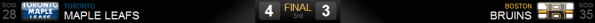 Final: Leafs 4 x Bruins 3! Mais dois pontos para este time que não entrega os pontos!
