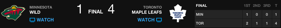 - Leafs thump Wild, add to best start since ’93 (scores.espn.go.com)